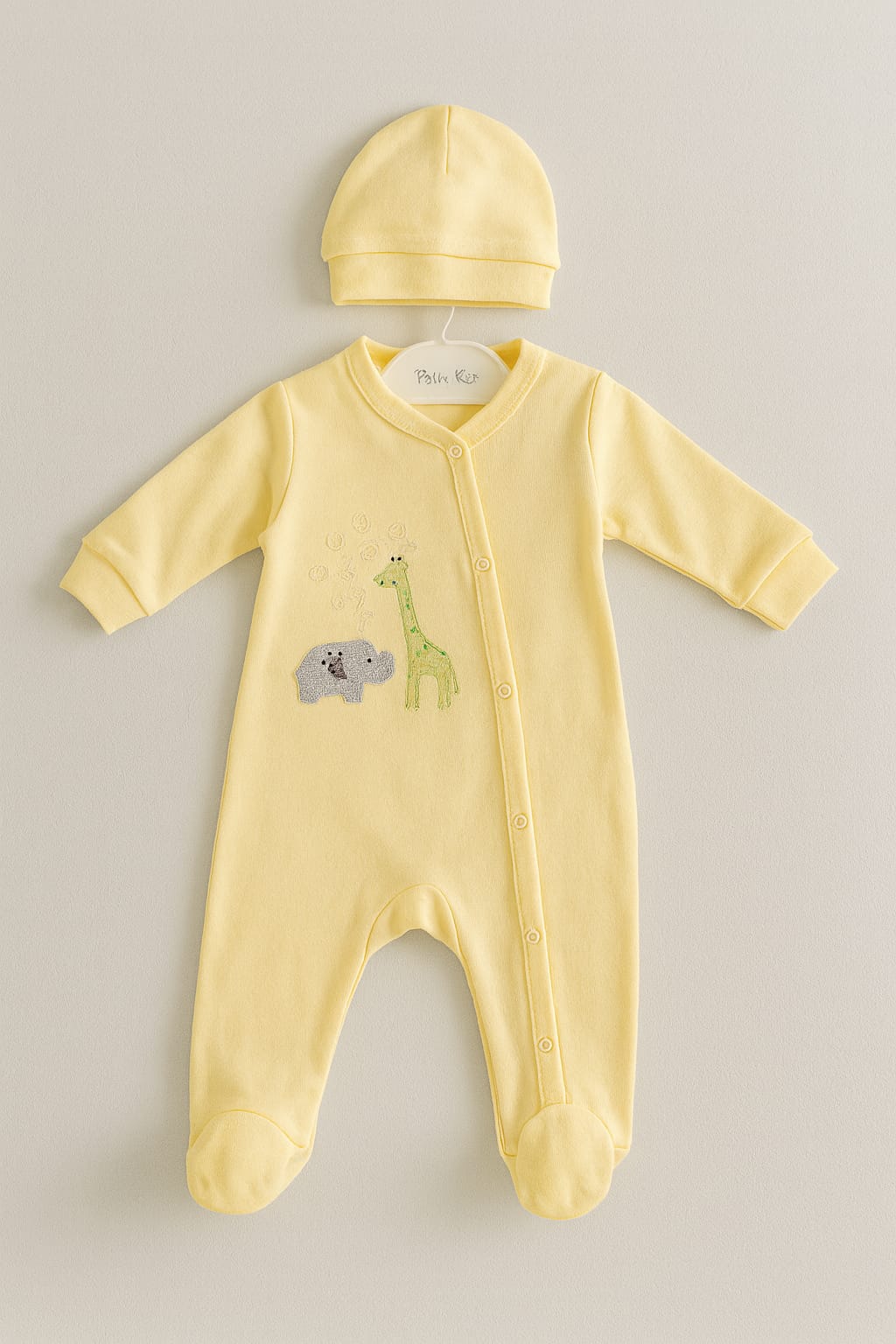 Dieser süße Strampler mit das Tiere Motto ist ein schönes Stück für Jungen. Er ist vorne seitlich geknöpft und daher einfach an- und auszuziehen. Ein süßes Motiv von einem Tiere ziert die Brust. Dieser Strampler ist in ein gelb erhältlich. Der Stoff besteht aus reiner Baumwolle und ist daher sehr zart zur Haut Ihres Babys.